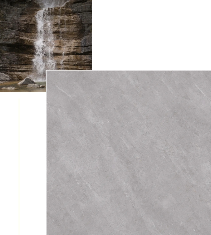 突破性550g加厚釉层,质感精进,砖面平整度再越跃升,有效规避水波纹、R角、辊棒印,呈现极致光洁表面。